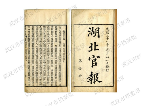 武汉市档案馆馆藏《湖北官报》共计10册,包括创刊号及第2-5册、第97册残本、第98册校勘本、第99册、第100册残本以及改办日报的第38册。时间跨度为光绪三十一年(1905年)至宣统三年(1911年),内容涉及政法、学说、兵事、财用及农工商渔各实业。《湖北官报》是政府用来传布政令、鼓吹新政、遏制革命思潮的重要舆论工具,是湖北地区较早刊登政府公开信息的地方官报之一,在研究中国近代新闻业发展、现代舆情管理以及推进政府信息公开等方面具备重要参考价值。