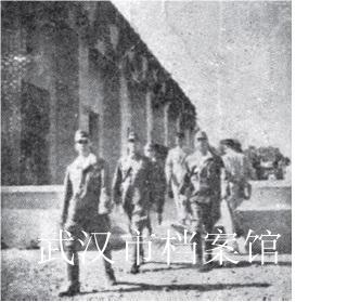 日本第六方面军司令官冈部直三郎、参谋长中山贞武及来福静岛、冈田芳政、清水勖之等人步入中山公园受降堂