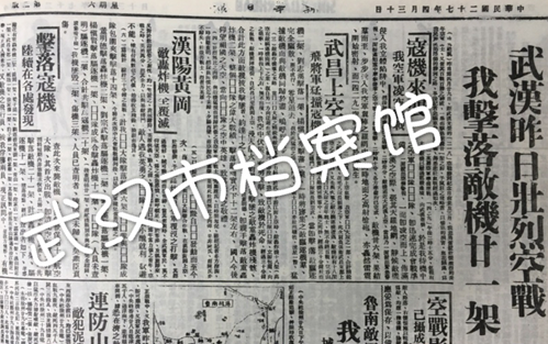 1938年2月18日上午十二时许 ,敌机38架陆续向武汉进袭,中国空军奋勇交绥,击落敌机11架。中国空军损失驱逐机4架,牺牲战士5人。