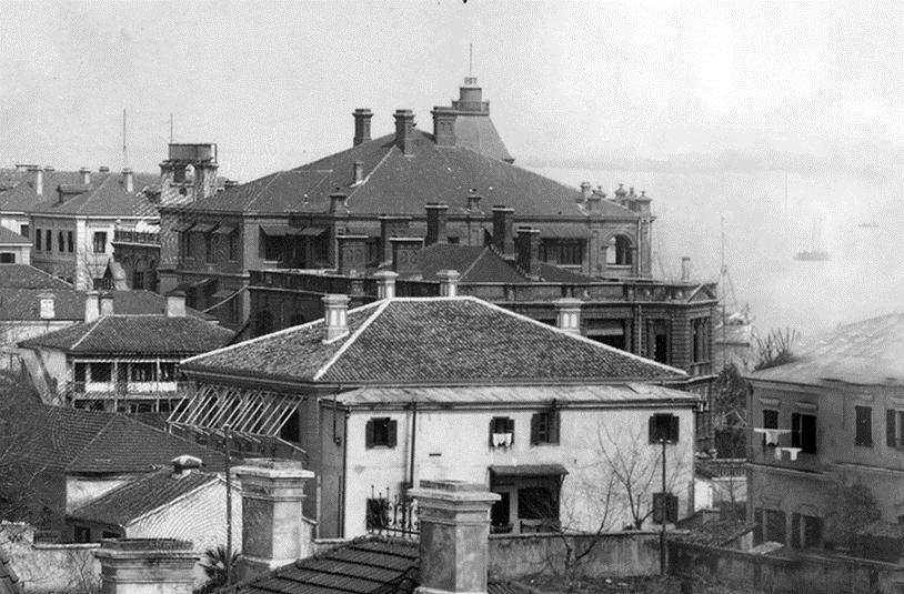 汉口俄租界,从巴公房子看美国领事馆和俄国领事馆顶部