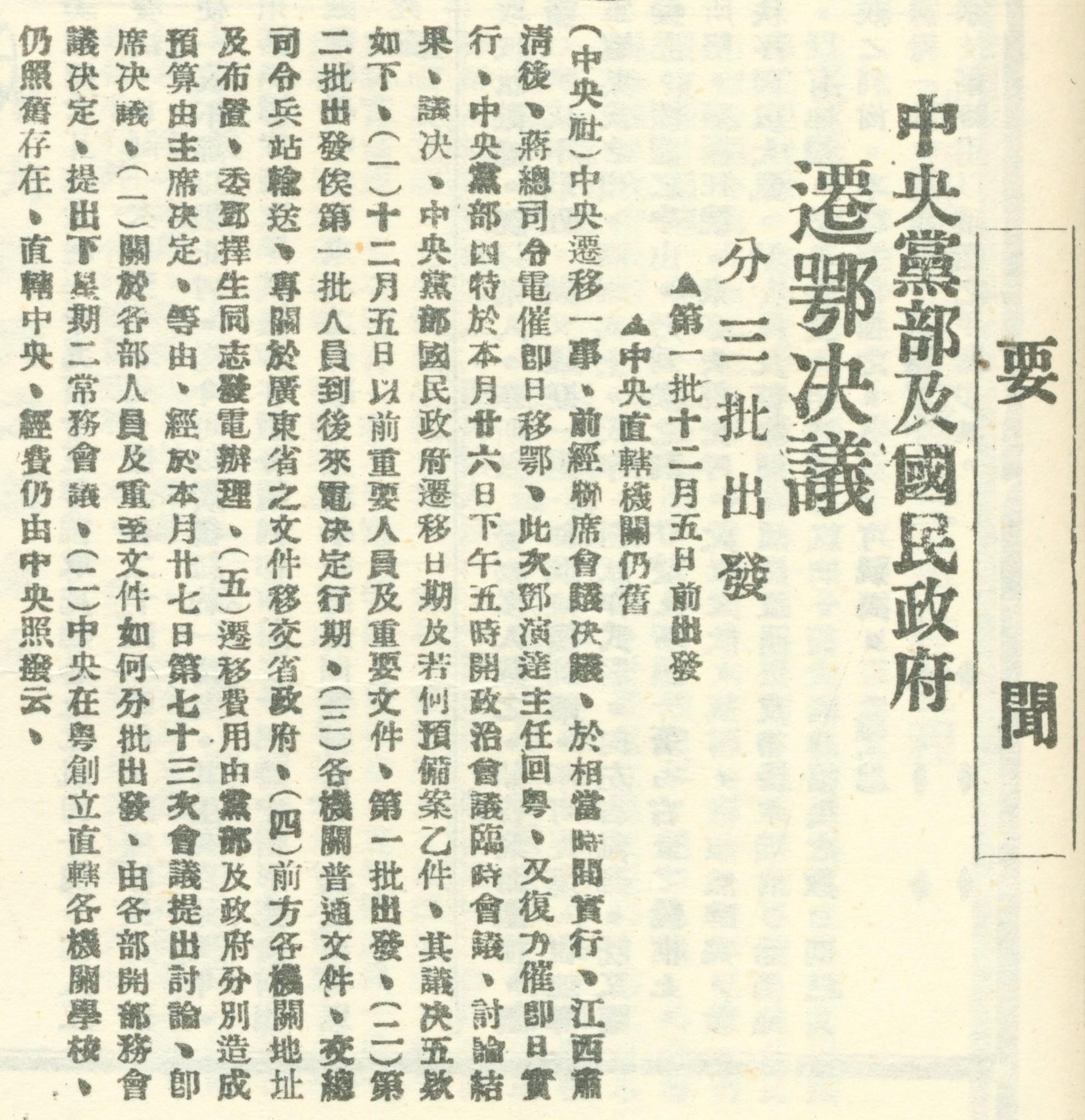 1926年11月29日《广州民国日报》,中央党部及国民政府迁鄂决议