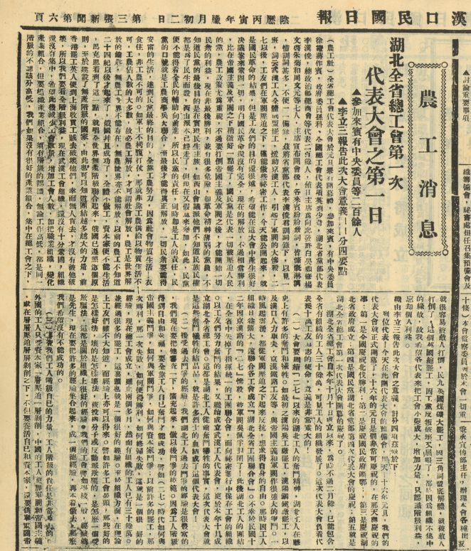 1927年1月5日,《汉口民国日报》关于湖北全省总工会第一次代表大会召开情况的报道