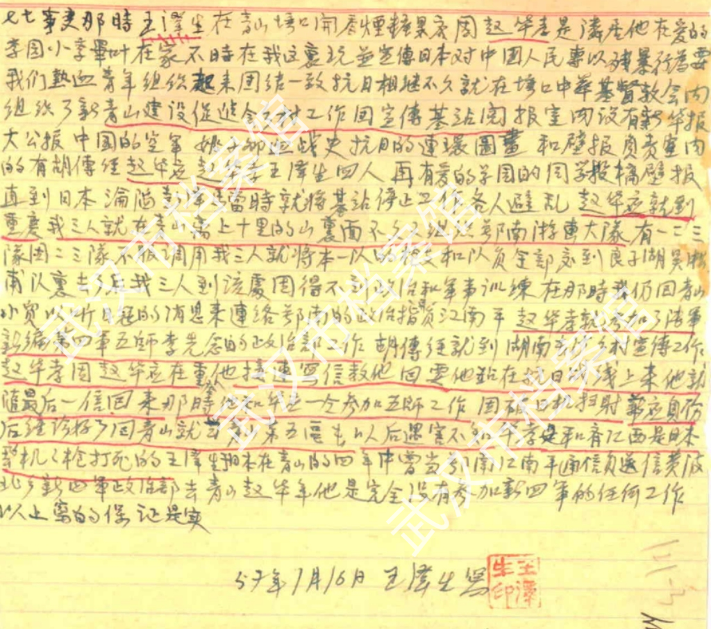 1957年,证明人王泽生反馈赵华孝和赵华应抗日的经历