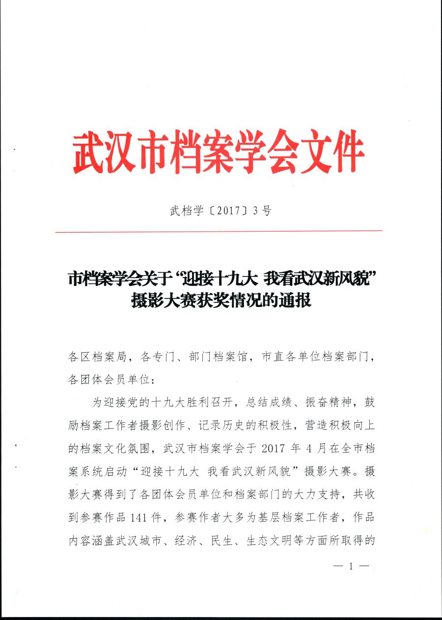 市档案局学会关于“迎接十九大 我看武汉新风貌”摄影大赛获奖情况的通报