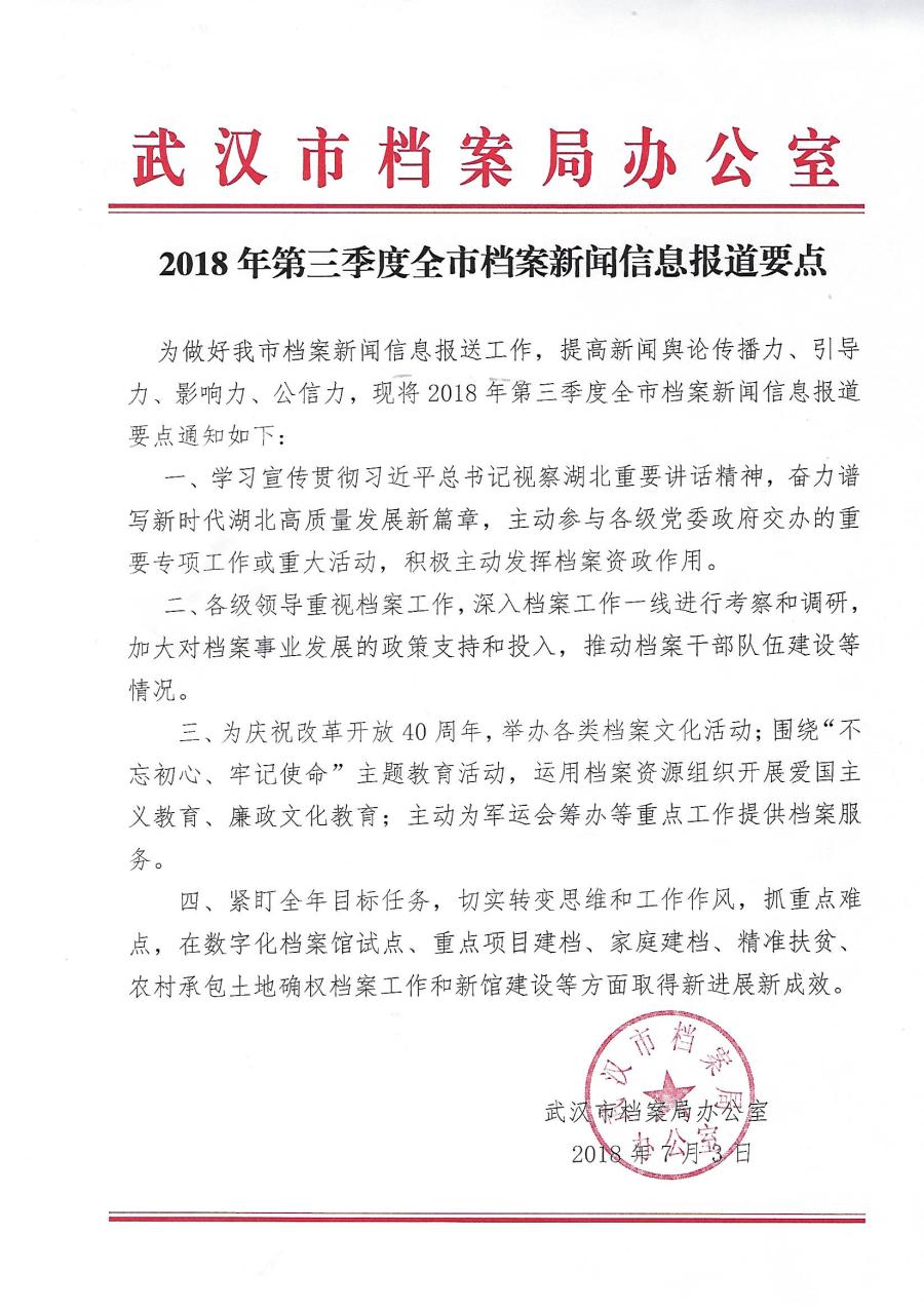 2018年第三季度全市档案新闻信息报道要点