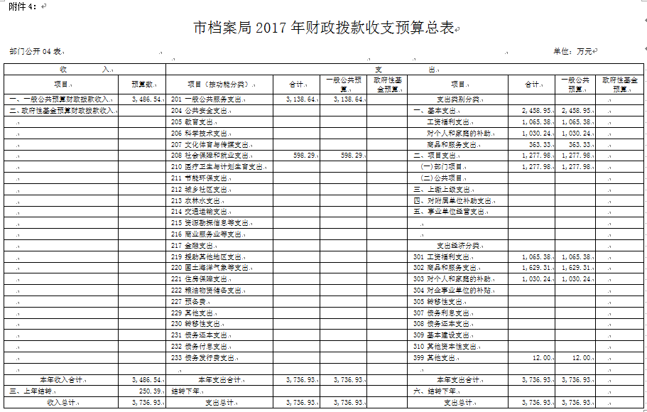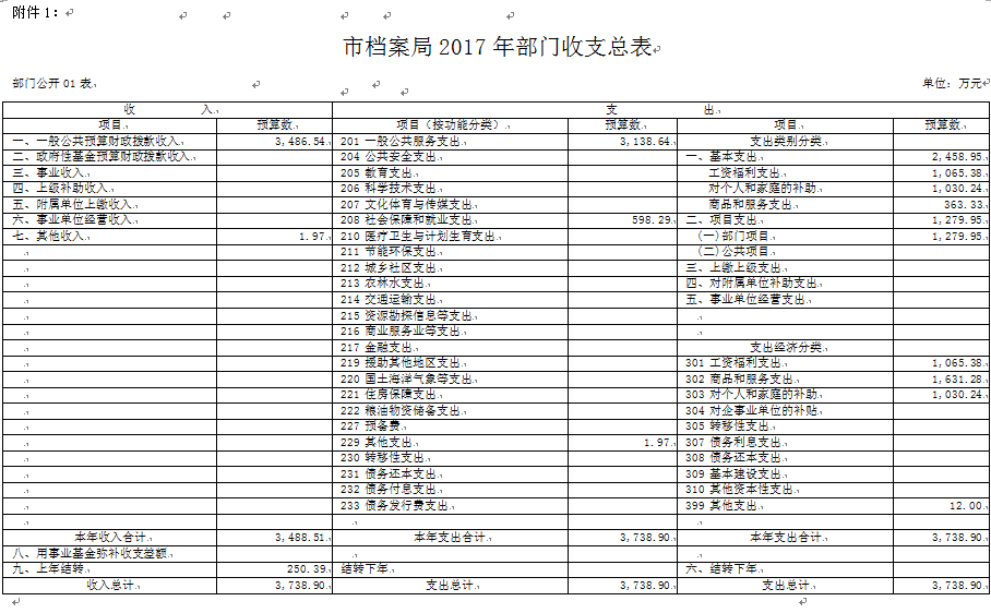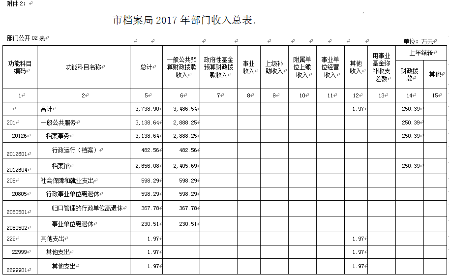 (一)2017年部门预算总收入3738.90万元。其中:一般公共预算财政拨款收入3486.54万元,其他收入1.97万元;上年结转250.39万元。
