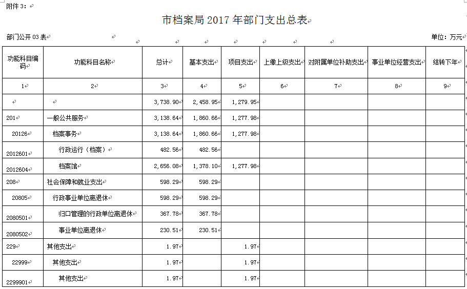 (二)2017年部门预算总支出3738.90万元。其中:基本支出2458.95万元;项目支出1279.95万元。