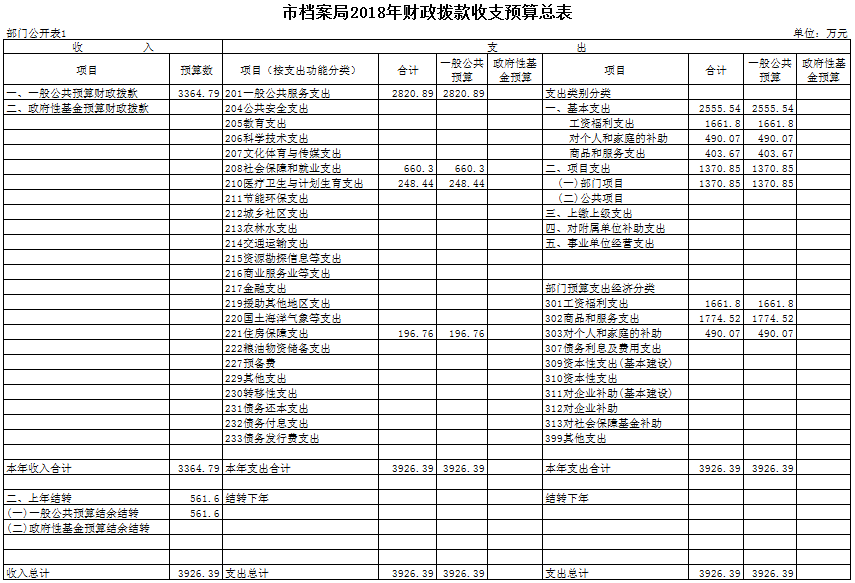 表1.市档案局2018年财政拨款收支预算总表