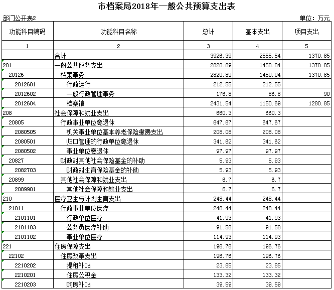 表2.市档案局2018年一般公共预算支出表