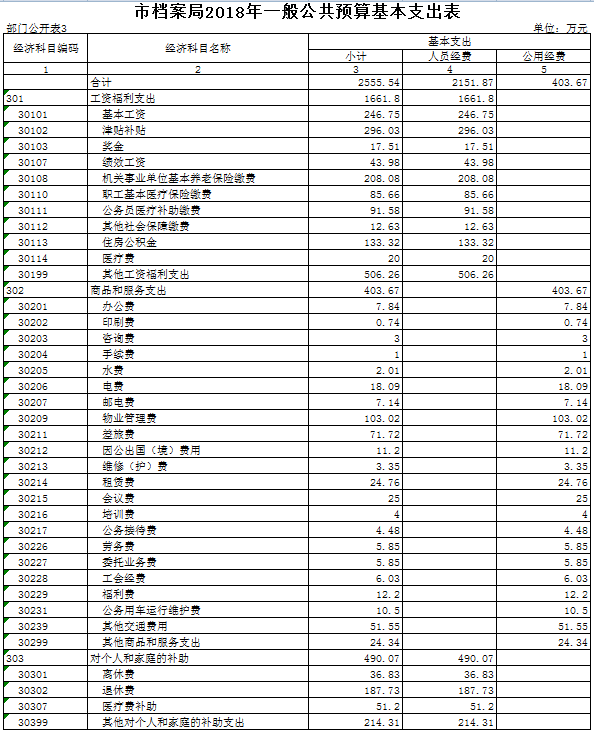 表3.市档案局2018年一般公共预算基本支出表