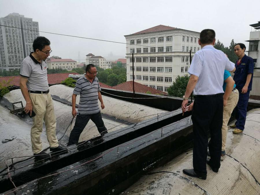 7月5日上午,武汉突降暴雨,因市档案馆库房所在房屋年代久远,有出现渗漏的危险,局馆领导高度重视,刘望云馆长带领相关工作人员第一时间赶到库房及楼顶,察看渗漏情况。
