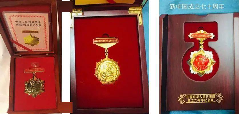 先后获得中国人民抗日战争胜利60周年纪念章、中国人民抗日战争胜利70周年纪念章和庆祝中华人民共和国成立70周年纪念章。