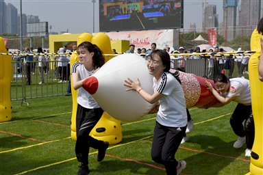 4月21日,“奋进新征程 建功英雄城”2023年市直机关职工趣味运动会在武汉市全民健身中心举行,市档案馆16名青年干部以饱满的热情、积极的心态、健康的状态参与了全部4个比赛项目,与来自武汉市其他89支市直机关代表队的1300余名干部职工同场竞技,通过篮球、棒球、橄榄球、跳绳、飞盘等混合运动项目比拼身体素质、智慧谋略及团队协作。