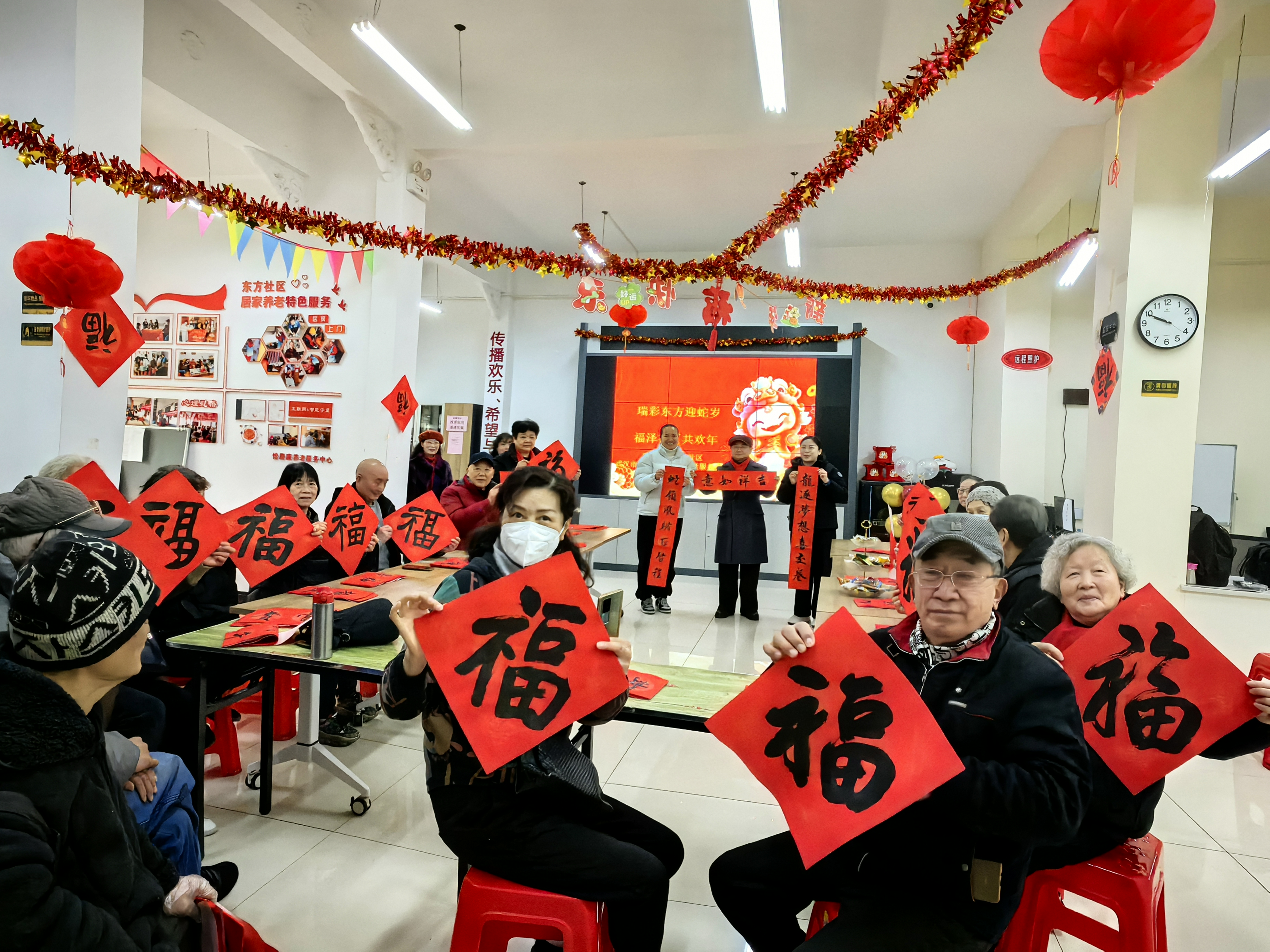 活动现场,市档案馆志愿者与社区工作人员一起将一碗碗热气腾腾的腊八粥送到老人手中。随后,市档案馆第一党支部书记宋晓丹现场书写春联与“福”“寿”字,送给各位寿星,并送去节日的温暖与问候,老人们脸上洋溢着灿烂的笑容。