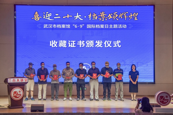 市档案馆向捐赠代表颁发收藏证书 李维斌摄