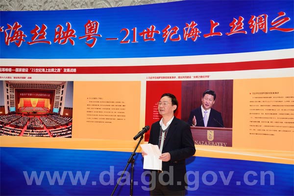 广东省档案局(馆)莫震局(馆)长在海丝映粤--21世纪海上丝绸之路广东大型图片展开幕式上致辞。(张城摄)