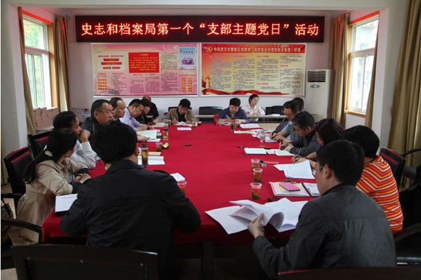 5月26日下午,黄陂区史志和档案局机关支部召开全体党员大会,重新选举产生了局机关支部委员会组成人员,新成立后的机关支部主持召开了第一个“支部主题党日”活动会议。“支部主题党日”由新当选的支部书记主持,党组书记胡庆华、局长杨剑波及全体党组班子成员都以普通党员的身份参加了“支部主题党日”活动。