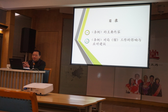 12月8日,市档案局中心组举办档案法治建设专题讲座,局中心组成员及全体干部职工参加了学习。根据中心组理论学习计划安排,局法规处的两名同志分别就《政府信息公开条例》对档案工作的影响及应对建议、涉及档案的诉讼案例解析这两个主题进行了讲述。局党组成员、副局长彭玉娟同志主持了学习会。此次全局馆集中学法和讲法,旨在落实局领导班子抓法治建设的各项要求,实施好《武汉市档案“七五”法治宣传教育规划》,推动档案法规进机关、进乡村、进学校、进企业、进单位的“六进”工作,不断强化局(馆)干部职工法治意识,全面提升档案治理能力。