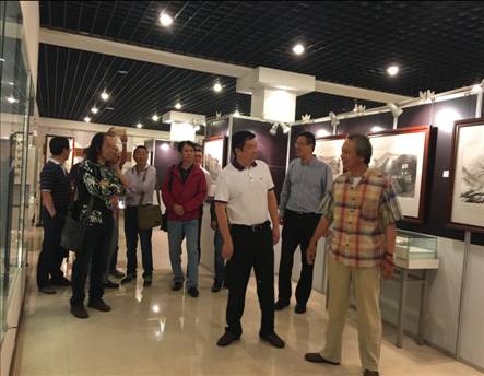 展览开幕当天,张明权局长参观了展览并与采风队领队暨此次展览主要创作人茅宗泽交谈(李欢摄影)
