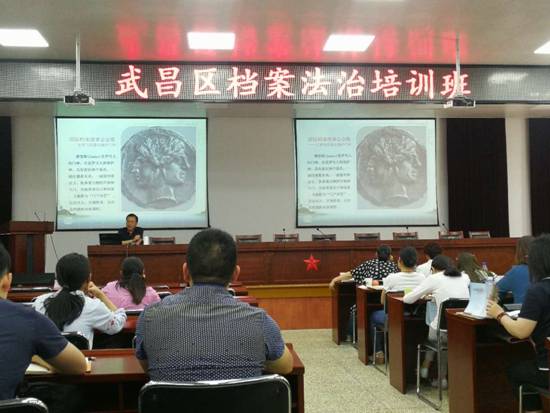 近日,武昌区档案局在区委党校二楼报告厅对全区新上岗档案员和继教人员进行了档案法治培训。市档案局法规处负责人从自身对档案工作的感悟介绍了档案意识的培养路径,讲解了《档案管理违法违纪行为处分规定》的有关条款,对几个典型档案违法案例进行了深入剖析,介绍了档案违法案件管辖范围等知识。通过学习,学员们进一步认识了档案的重要性,具备了一定的档案法律法规知识。