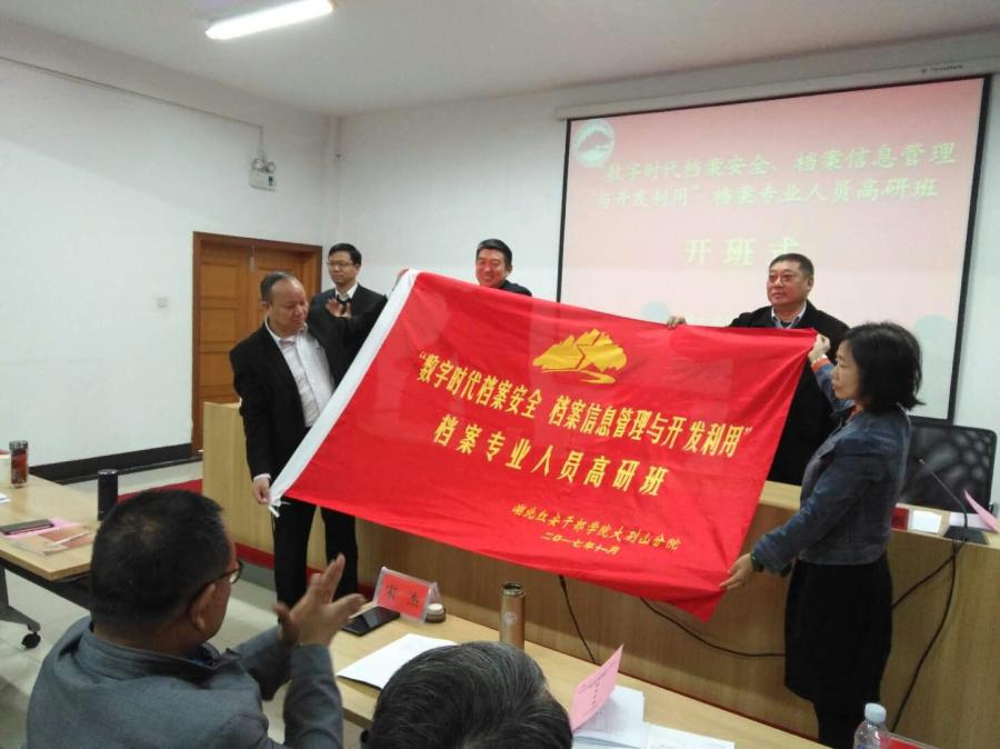 张明权在开班式上指出,正值全国上下学习宣传贯彻党的十九大精神之际,我们来到红安这片红色的土地,组织开展业务知识培训和红色教育系列活动,就是为了不忘初心,牢记档案人的使命。档案工作姓“党”,这是由档案的政治属性和政治要求决定的。我们从事档案工作的同志,特别是来自全市各个档案部门的领头人,必须带头讲政治,牢固树立“四个意识”,把党的十九大精神作为第一堂必修课,努力学习,提高自己的政治素养和思想理论水平,站位要更高,眼界要更宽,既要业务精,更要服务优。张明权强调,要把学精神、精业务、勇担当结合起来,在学懂、弄通、做实上下功夫。进入新时代,我们要深刻领会信息社会发展变化的新特征,顺应档案工作即将进入“数字化、网络化、智能化”的新趋势,围绕人民日益增长的美好生活需要,围绕市委提出的“为老百姓谋幸福、为大武汉谋复兴”的使命担当,以人民群众在档案利用中的难点和痛点为目标方向,抓住机遇,加快推进符合国家要求的档案馆库建设;主动适应数字时代要求,加快推进数字档案馆建设,以档案信息化、数字化带动档案部门转型升级和创新发展。