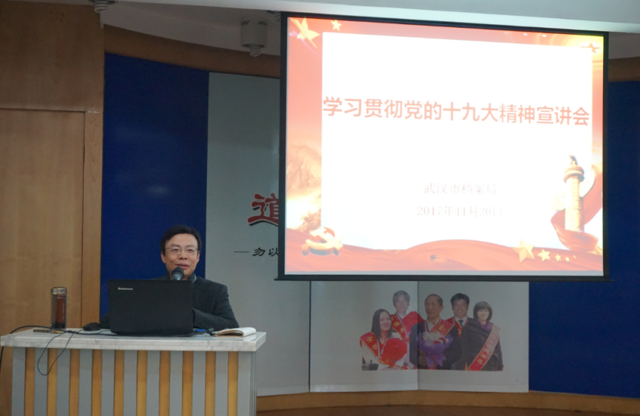 11月20日下午,市档案局举行党的十九大精神宣讲报告会,邀请市委宣讲团成员、武汉市委党校副校长丁士松教授以《走进新时代 开启新征程——党的十九大精神解读》为题作辅导报告。报告会由市档案局副局长彭玉娟主持,局馆全体干部职工参会。