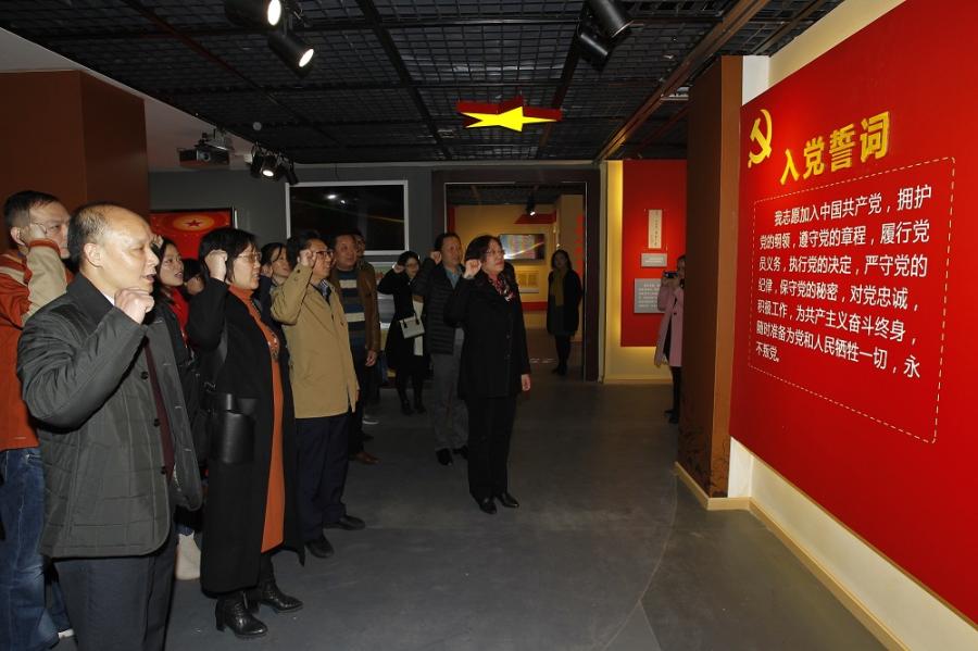 参观现场,全体党员郑重宣誓,重温入党誓词,并一致表示,在今后的工作中要进一步坚定理想信念,弘扬革命先烈的优良传统,认真履职尽责,为武汉档案事业持续健康发展做出新的贡献。