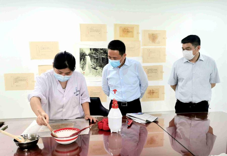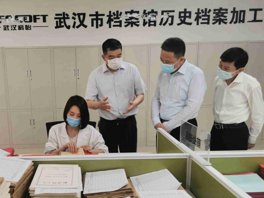 5月26日, 武汉市委常委、秘书长龙良文,市委副秘书长张东风一行,赴武汉市档案馆新馆调研并召开座谈会。龙良文在市档案馆馆长张明权的陪同下,实地参观了档案展厅、查阅中心、数字化加工线、数据机房、智能库房、档案裱糊室等功能用房,详细了解新馆使用状况。