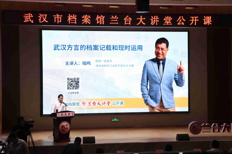 9月28日下午,“兰台大讲堂”档案公开课首课——“武汉方言的档案记载和现时运用”在市档案馆二楼学术报告厅开讲,正式拉开了“兰台大讲堂”的帷幕。首课由国家一级演员、武汉方言文化传播者陆鸣老师主讲,现场有学生、社区居民、企业职工、人文爱好者和档案工作者等180多人参加,同时在武汉广播电视台融媒体平台进行线上直播,观看人数达5.9万人。