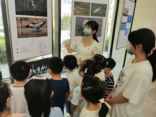 家长和孩子们在讲解员的引导下,观看了展厅中200余张馆藏鸟类照片档案,这些照片都是近5年来在武汉各湿地拍摄的,展现了十八大以来武汉市生态文明建设成就,展厅中还摆放了湿地鸟类的仿真模型,内容丰富,妙趣横生。