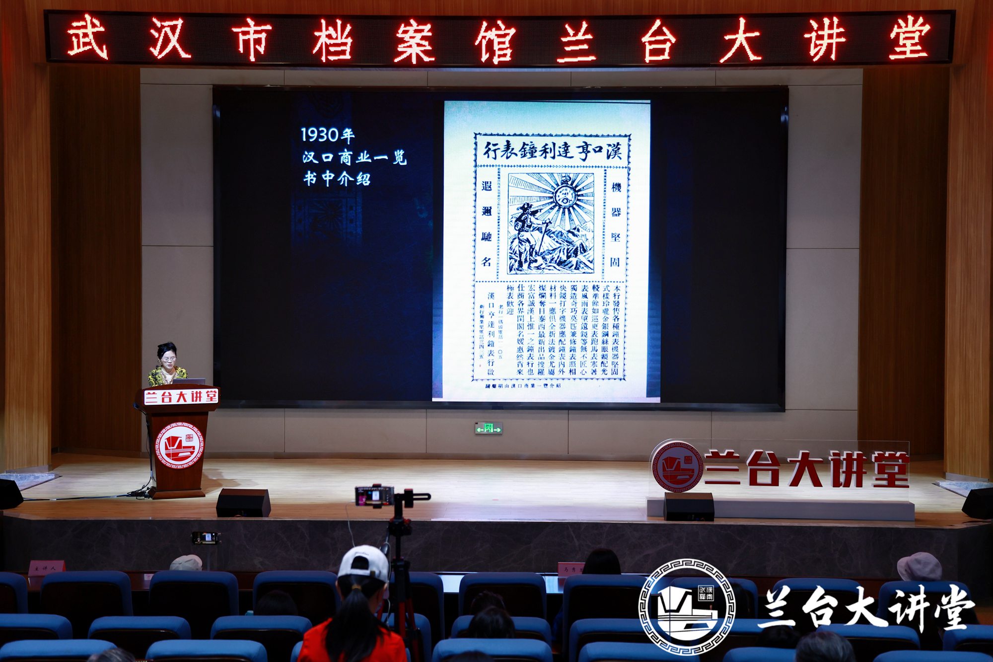 公开课上,方三勤通过翔实的档案资料和照片、视频,介绍了武汉老字号的发展概况,重点分享了高洪太铜锣、叶开泰、糕点汪玉霞、亨达利钟表、精益眼镜五个百年老字号的发展故事,阐述武汉老字号所蕴含的传承精神、诚信精神和创新进取精神,并指出中华老字号发展所面临的困惑及未来发展方向。同时她也希望通过此次档案公开课,让更多的人尤其是年轻人了解老字号的历史渊源、关注老字号的发展、加入到老字号传承中来。