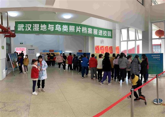 2023年2月,武汉市中小学开学第一天,市档案馆举办的《湿地花城 百鸟争鸣》武汉湿地与鸟类照片档案展来到湖北省武昌实验小学东湖国际校区与同学们见面,开启“绿色第一课”。