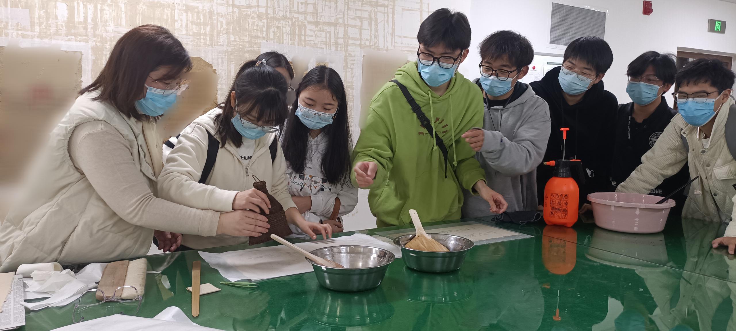 工作人员引导师生们依次参观了查阅大厅、数字化加工中心、陈列展、修裱室、数据中心机房与档案智慧库房等。参观中工作人员逐一讲解,积极指导同学们使用电子档案阅读大厅系统阅读档案原文,亲手体验修裱过程,实地操作库房密集架体验调取档案,让同学们到档案工作一线体验档案人的工作日常,深入了解武汉市档案馆的工作内容、功能职责等。