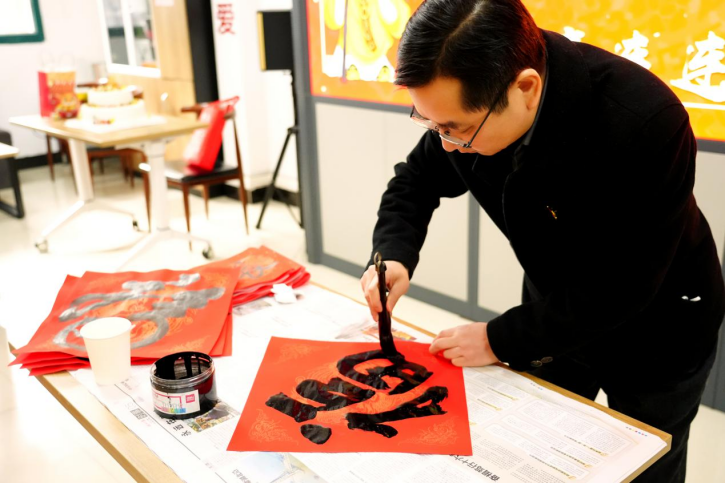 市档案馆第一党支部书记宋晓丹现场为寿星写对联与“福”