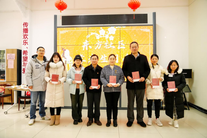 在东方社区孝老集体生日活动现场,市档案馆馆长徐辉上台为2024年1月至2月65岁以上的30余名寿星送出祝福,并与社区党委书记南璇一同为老人切生日蛋糕,第一党支部书记宋晓丹现场书写对联与“福”字,送给各位寿星,其中包括独创的“龙福”,以此迎接即将到来的龙年新年。最后,市档案馆向东方社区赠送《灿若晨星——武汉革命先烈小传》书籍。