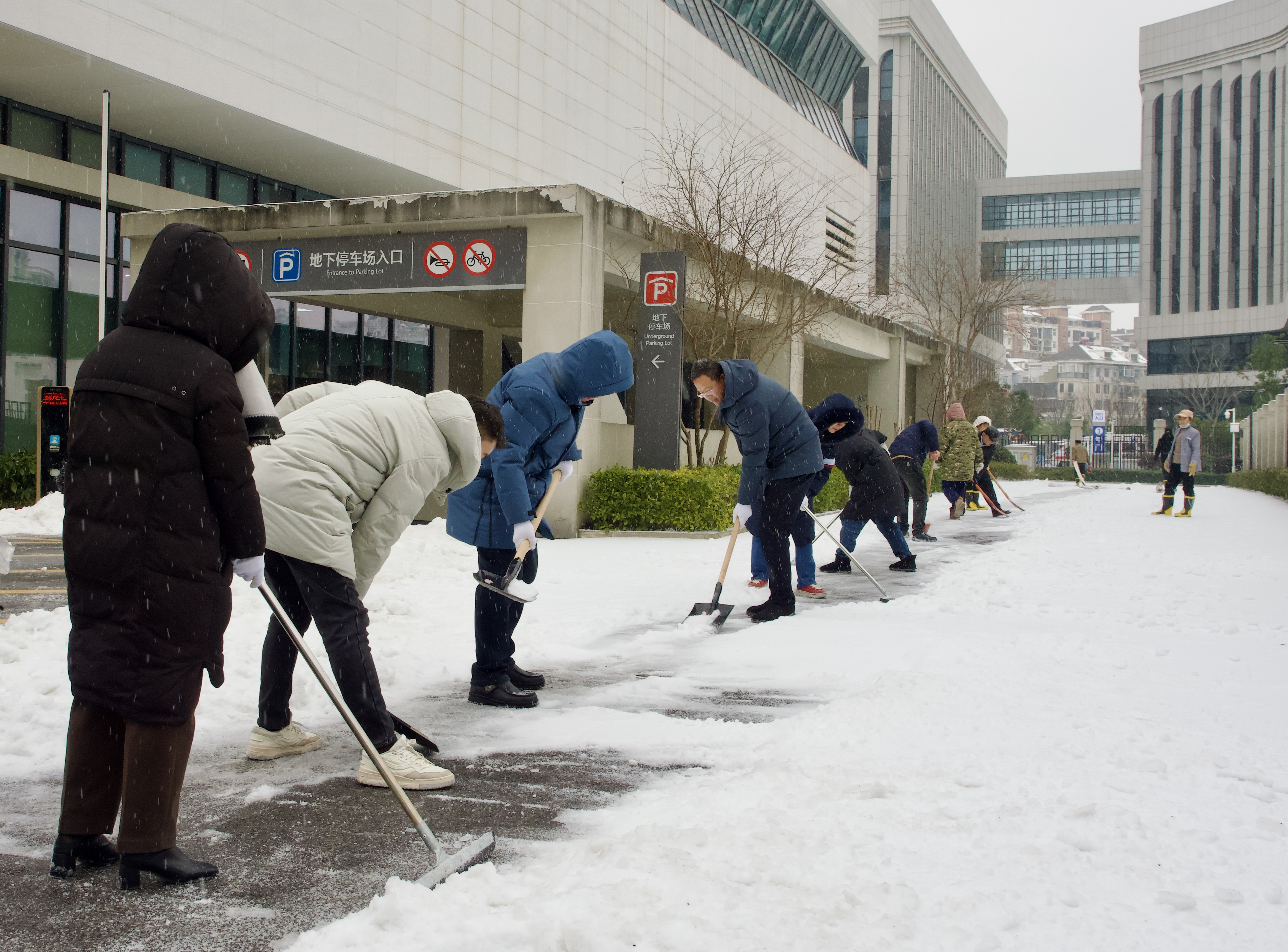 面对低温雨雪冰冻天气,市档案馆充分发挥基层党组织的战斗堡垒作用和党员的先锋模范作用,组织党员干部全力以赴战冰雪、保安全。2月22日上午,馆领导率先垂范,带领全馆党员干部、物业人员80余人将馆院内出入口、人行道及院外连接地铁人行道上的积雪全部清除,保证查档者和过路行人安全畅通出行。馆青年干部闻令而动、连续“作战”,完成单位铲雪工作后,立即组成一支10人突击队,顶着严寒、冒着风雪,携带铲雪工具到对口下沉东方社区协助铲雪除冰,经过半天的奋战,在积雪中成功开辟出兴业南路两侧近1200米的人行道,确保了人民群众的出行安全。