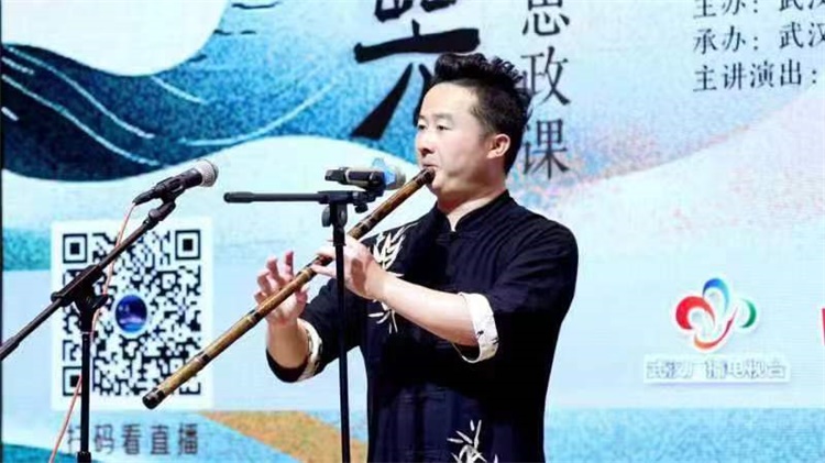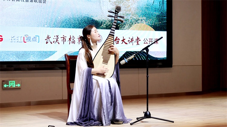 表演和互动环节,中国音协排箫艺术研究会副会长吕涛、中国陶笛艺术研究所副所长齐高峰、武汉音协高校笛箫联谊会秘书长张星、青年琵琶演奏家王晓凤等先后登场,以独奏、合奏等方式,展示和演奏了古琴、埙、琵琶、竹笛、洞箫、陶笛、管子、唢呐等乐器,《十面埋伏》《远风》《鸿雁》等十多首经典曲目奏响现场,风格各异、题材丰富的乐曲,时而热烈奔放、时而委婉如诉的演奏,让大家近距离欣赏国风音乐之美,感受到了中华优秀传统文化的深厚魅力。表演结束,不少青少年朋友兴趣盎然,纷纷围着专家老师继续请教有关乐器和音乐的话题。