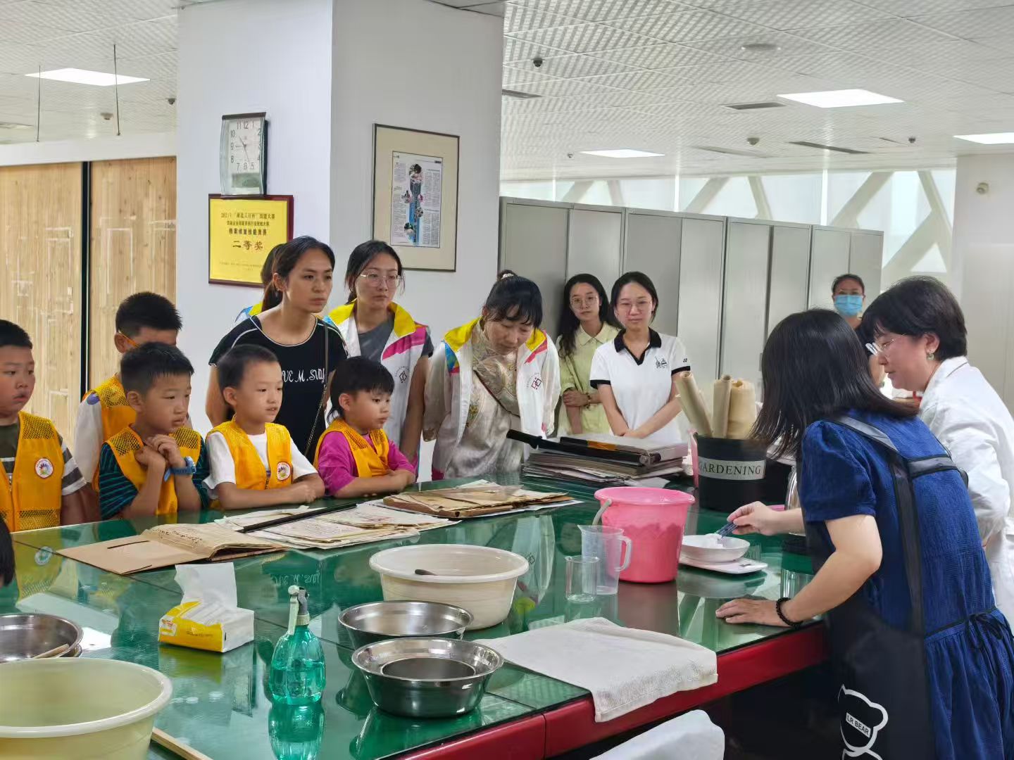 随后,家长和孩子们前往了专业修裱室体验档案修复技术。专业修裱人员为孩子们演示了浆糊的调配和简单的破损档案修裱程序,孩子们在专业人员的指导下亲自体验修裱技艺。这场实践不仅深化了孩子们对档案修复技术的认知,更强化了保护档案的责任意识。