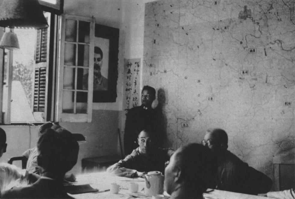 1938年,中共中央长江局周恩来等人在八路军武汉办事处一起研究时局。