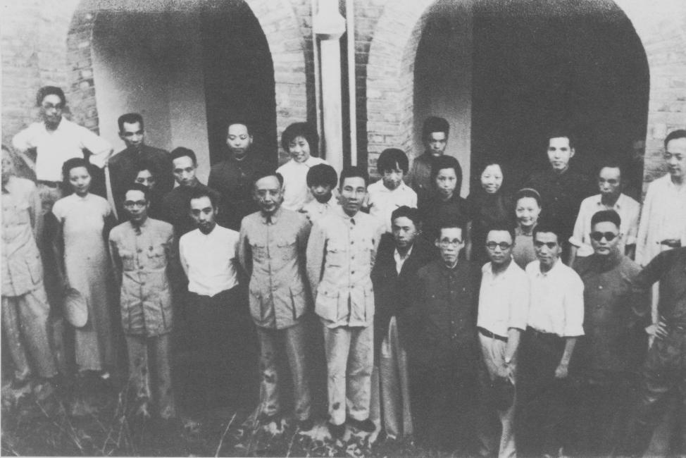 1938年,周恩来、郭沫若在武汉与政治部第三厅人员合影。